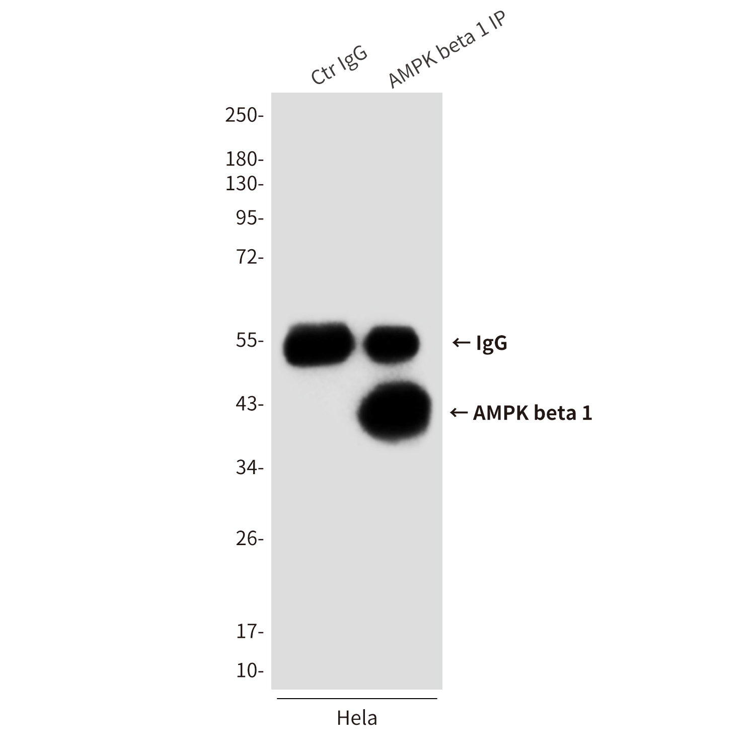 Immunoprecipitation analysis of AMPK beta 1 in Hela lysates using AMPK beta 1 antibody. |