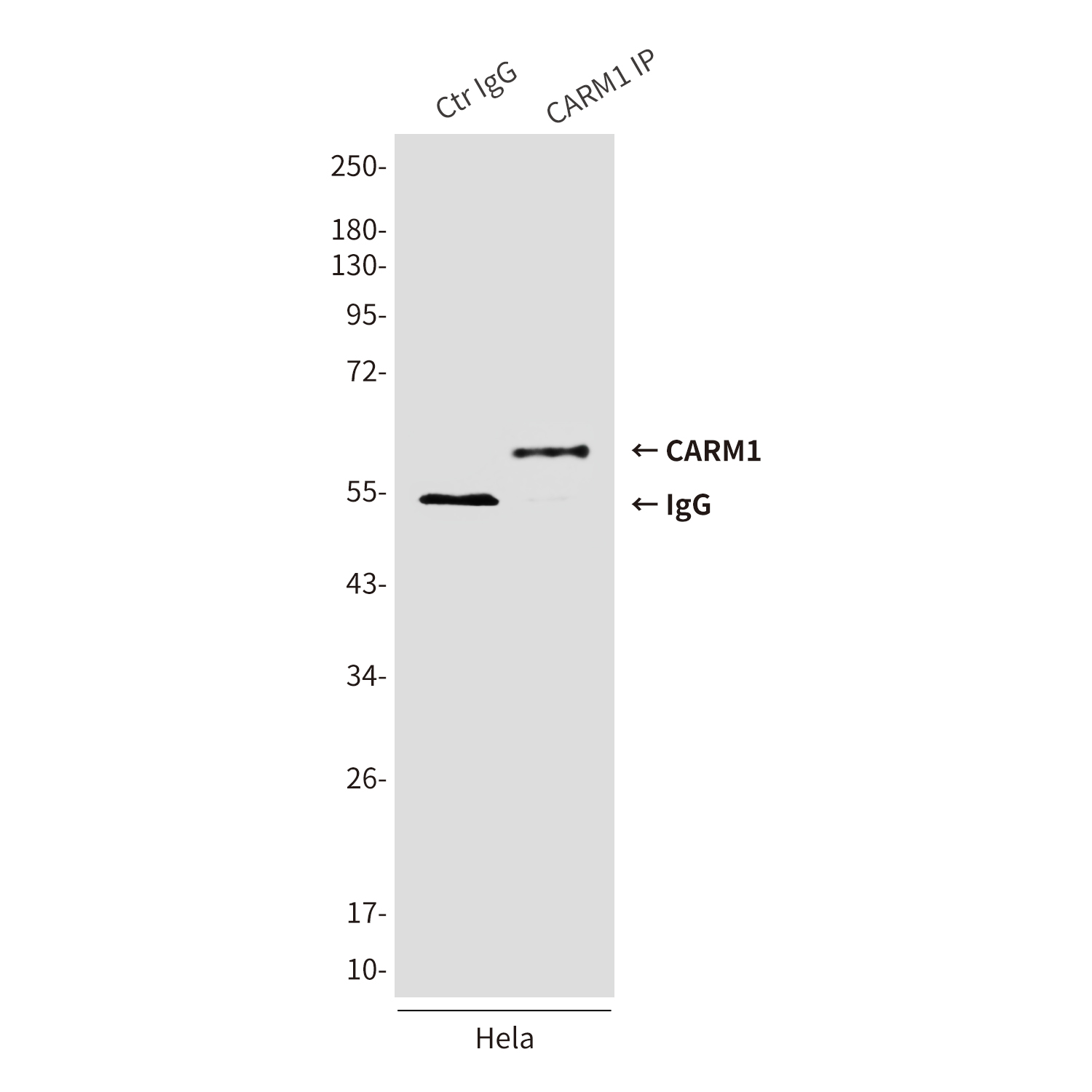 Immunoprecipitation analysis of CARM1 in Hela lysates using PRMT4/CARM1 antibody. |