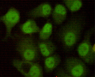 Immunocytochemistry analysis of DNA PKcs in Hela using DNAPKcs antibody. |