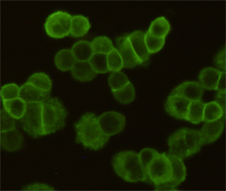 | EGFR is a receptor tyrosine kinase. Receptor for epidermal growth factor (EGF) and related growth factors including TGF-alpha, amphiregulin, betacellulin, heparin-binding EGF-like growth factor, GP30 and vaccinia virus growth factor. Is involved in the control of cell growth and differentiation. . A single-pass transmembrane tyrosine kinase. Ligand binding to this receptor results in receptor dimerization, autophosphorylation (in trans), activation of various downstream signaling molecules and lysosomal degradation. |