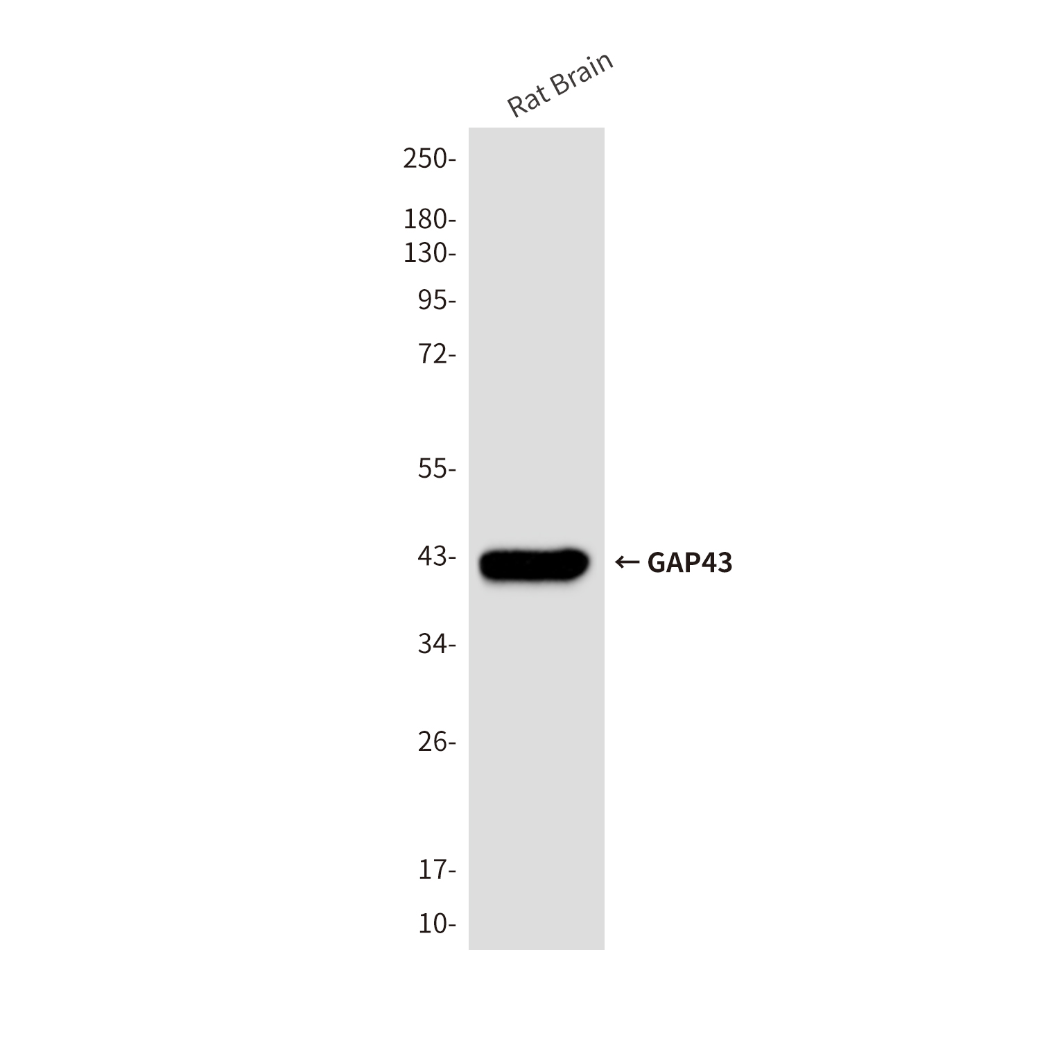 Western blot analysis of GAP43 in rat Brain lysates using GAP43 antibody. |