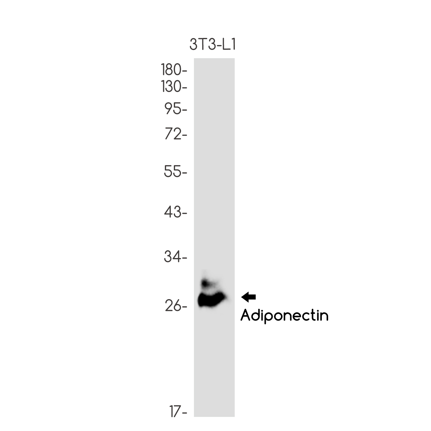 Western blot analysis of Adiponectin in 3T3-L1 lysates using Adiponectin antibody. |