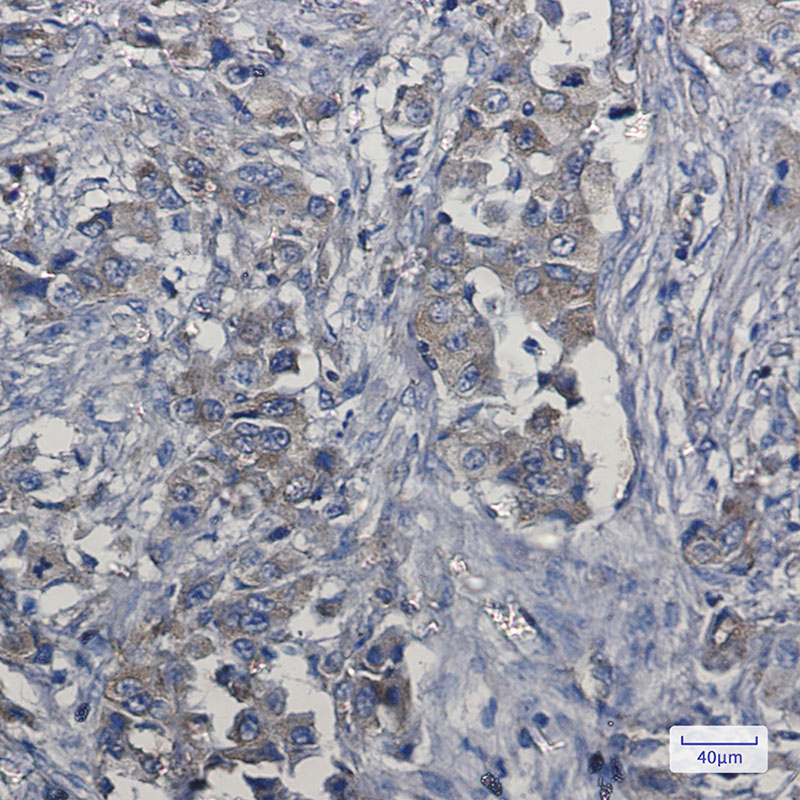 Immunohistochemistry analysis of paraffin-embedded Human lung cancer using Met (c-Met) antibody. High-pressure and temperature Sodium Citrate pH 6.0 was used for antigen retrieval. |