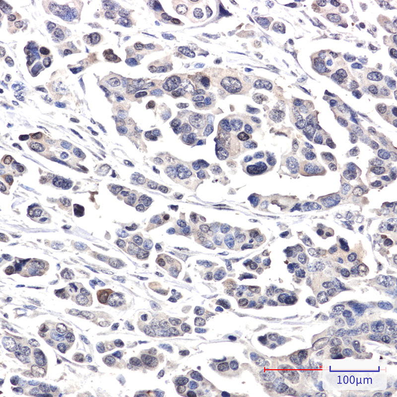 Immunohistochemistry analysis of paraffin-embedded Human Cholangiocarcinoma using CRCP antibody.High-pressure and temperature Sodium Citrate pH 6.0 was used for antigen retrieval. |