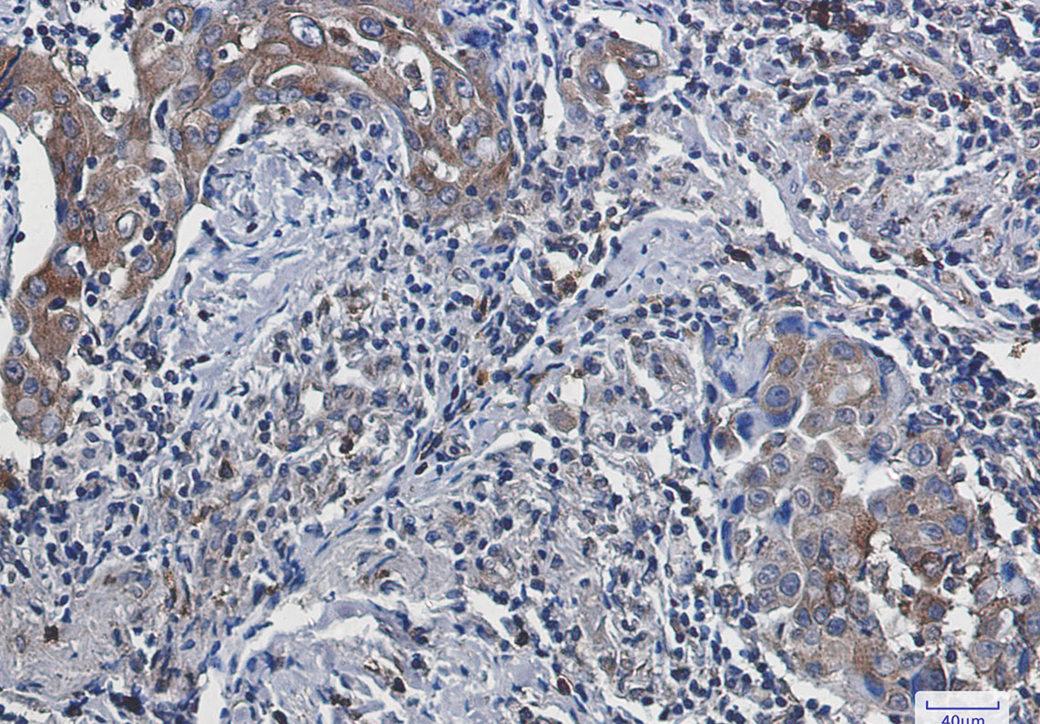 Immunohistochemistry analysis of paraffin-embedded Human lung cancer using FACL4 antibody.High-pressure and temperature Sodium Citrate pH 6.0 was used for antigen retrieval. |