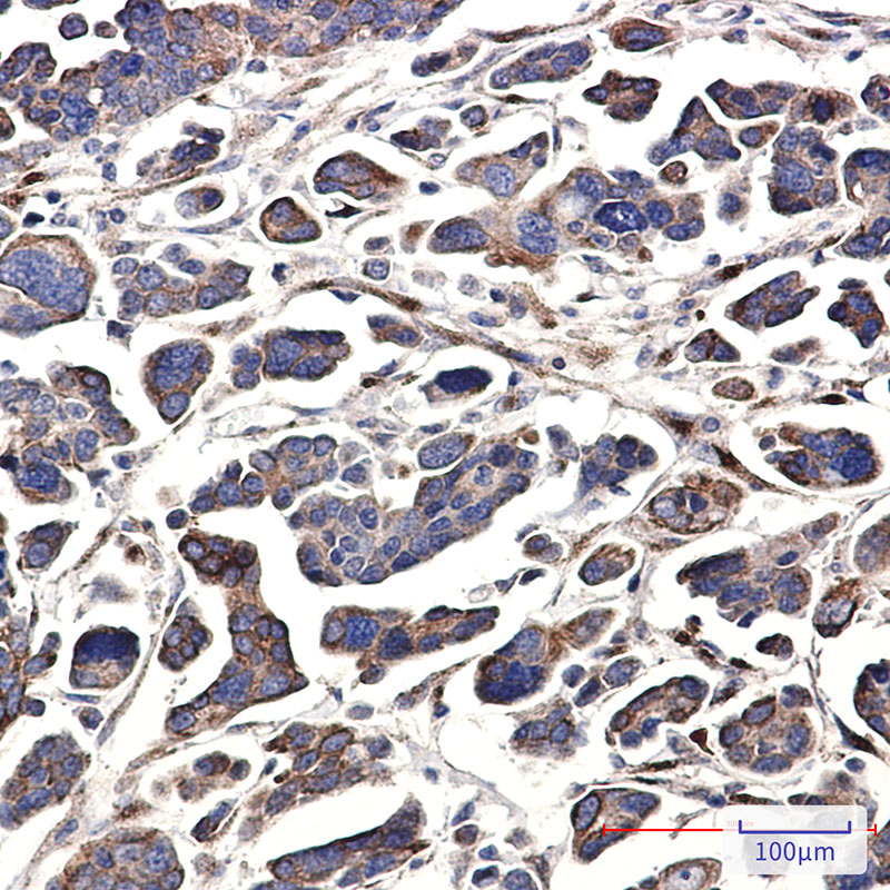Immunohistochemistry analysis of paraffin-embedded Human Cholangiocarcinoma using G protein alpha 13 antibody.High-pressure and temperature Sodium Citrate pH 6.0 was used for antigen retrieval. |