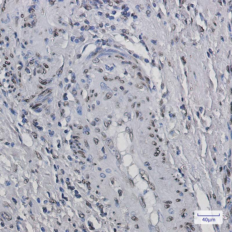 Immunohistochemistry analysis of paraffin-embedded Human colon cancer using Histone H2B antibody.High-pressure and temperature Sodium Citrate pH 6.0 was used for antigen retrieval. |