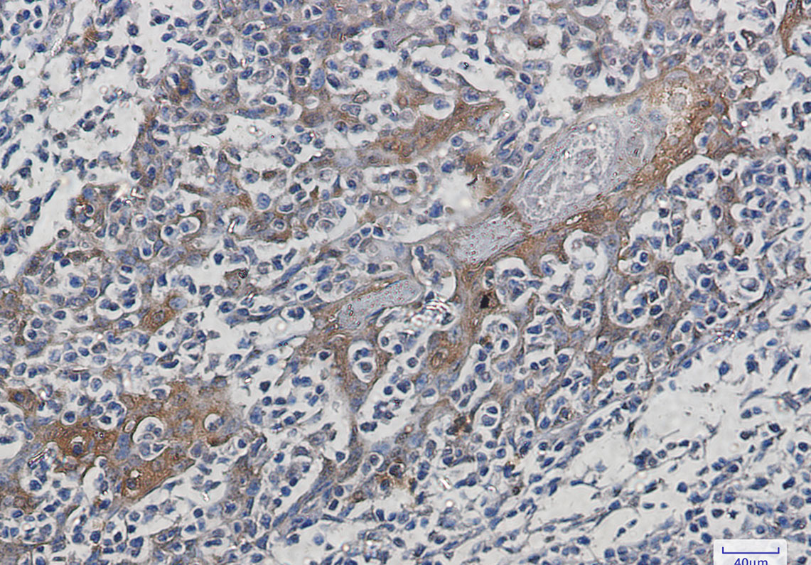Immunohistochemistry analysis of paraffin-embedded Human tonsil using Hsp70 antibody. High-pressure and temperature Sodium Citrate pH 6.0 was used for antigen retrieval. |