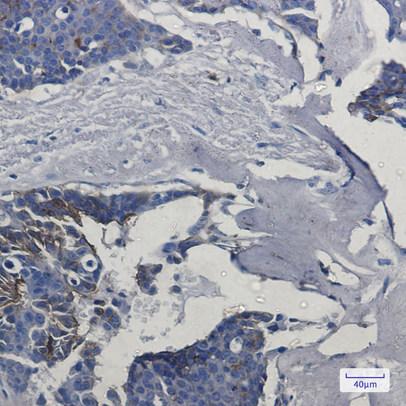 Immunohistochemistry analysis of paraffin-embedded Human breast cancer tissue using IFITM1 antibody. High-pressure and temperature Sodium Citrate pH 6.0 was used for antigen retrieval. |