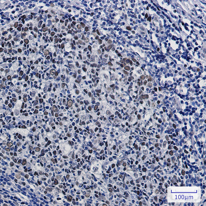 Immunohistochemistry analysis of paraffin-embedded Human tonsil using KAT1/HAT1 antibody. High-pressure and temperature Sodium Citrate pH 6.0 was used for antigen retrieval. |