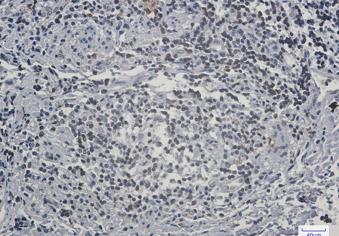 Immunohistochemistry analysis of paraffin-embedded Human lung cancer using Lamin B Receptor antibody.High-pressure and temperature Sodium Citrate pH 6.0 was used for antigen retrieval. |