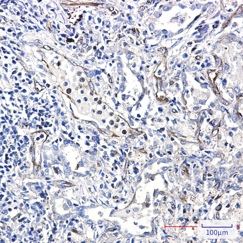 Immunohistochemistry analysis of paraffin-embedded Human lung cancer using Moesin antibody. High-pressure and temperature Sodium Citrate pH 6.0 was used for antigen retrieval. |