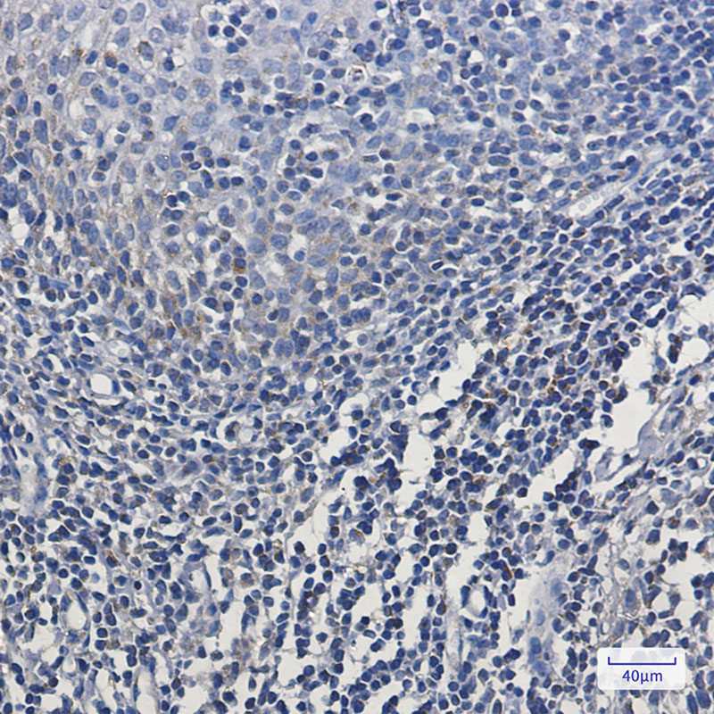 Immunohistochemistry analysis of paraffin-embedded Human tonsil using MTCO2 antibody.High-pressure and temperature Sodium Citrate pH 6.0 was used for antigen retrieval. |