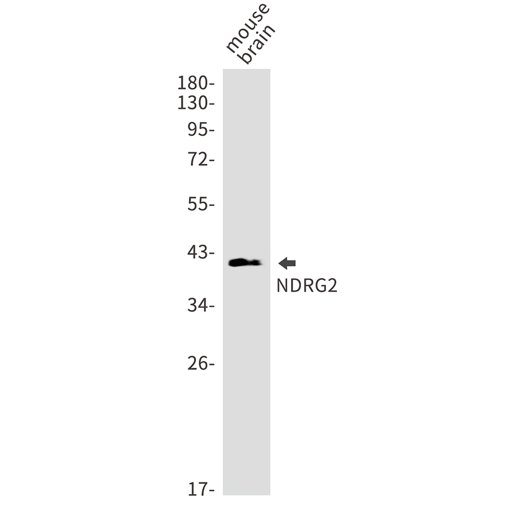 Western blot analysis of NDRG2 in mouse brain lysates using NDRG2 antibody. |