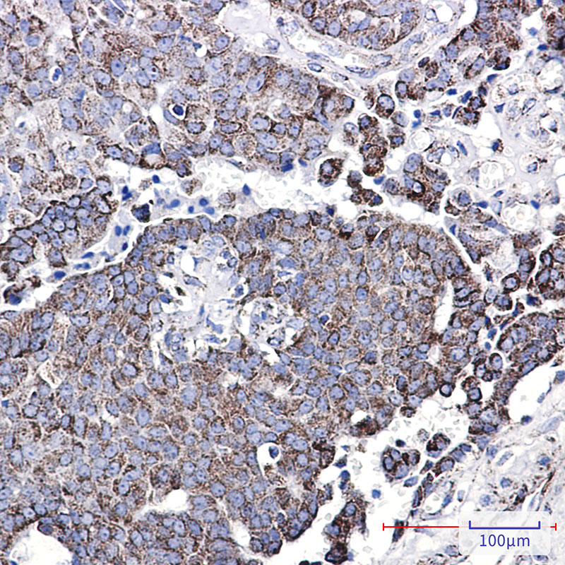 Immunohistochemistry analysis of paraffin-embedded Human breast cancer using NDUFC2 antibody.High-pressure and temperature Sodium Citrate pH 6.0 was used for antigen retrieval. |