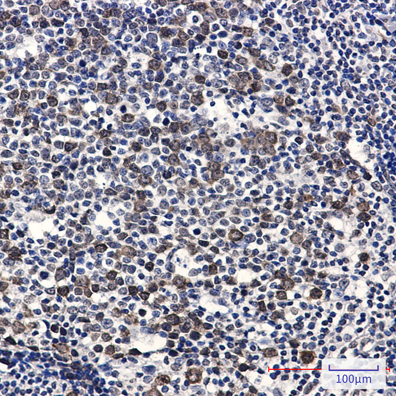 Immunohistochemistry analysis of paraffin-embedded Human tonsil using Cdk2 (Phospho-Thr14) antibody.High-pressure and temperature Sodium Citrate pH 6.0 was used for antigen retrieval. |