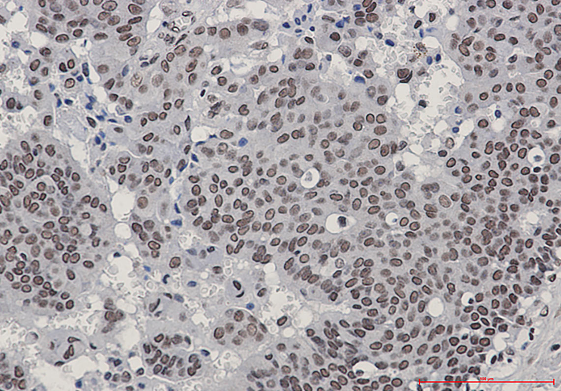 Immunohistochemistry analysis of paraffin-embedded Human breast cancer using HSF1 (Phospho-Ser303/Ser307) antibody.High-pressure and temperature Sodium Citrate pH 6.0 was used for antigen retrieval. |