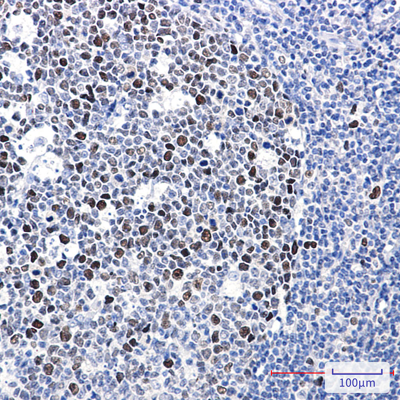 Immunohistochemistry analysis of paraffin-embedded Human tonsil using MCM2 (Phospho-Ser40) antibody.High-pressure and temperature Sodium Citrate pH 6.0 was used for antigen retrieval. |