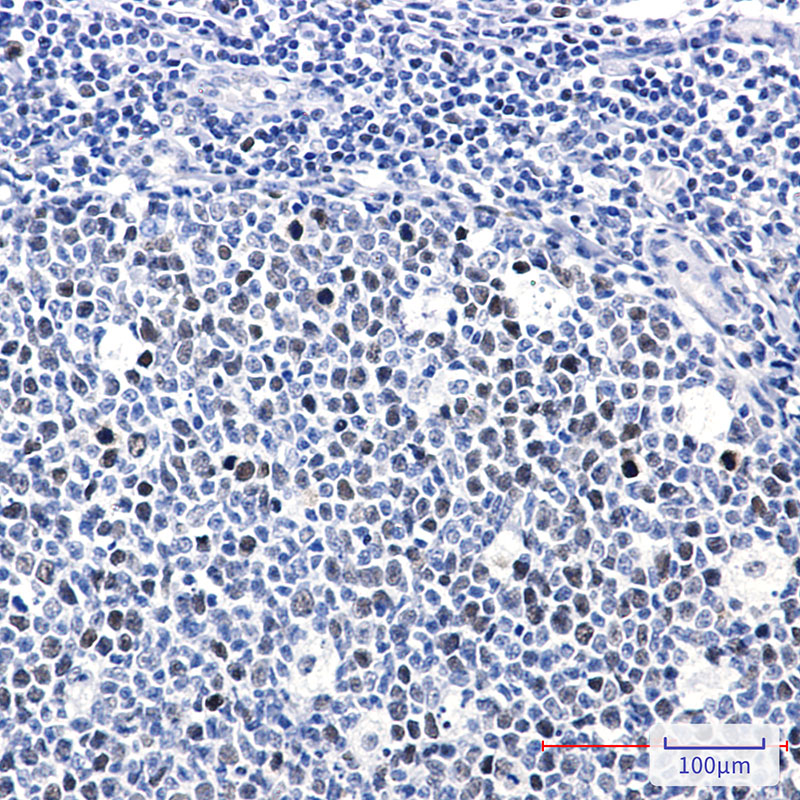 Immunohistochemistry analysis of paraffin-embedded Human tonsil using Rb (Phospho-Thr252) antibody.High-pressure and temperature Sodium Citrate pH 6.0 was used for antigen retrieval. |