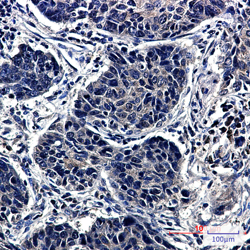 Immunohistochemistry analysis of paraffin-embedded Human lung cancer tissue using TCP1 alpha/CCTA antibody.High-pressure and temperature Sodium Citrate pH 6.0 was used for antigen retrieval. |