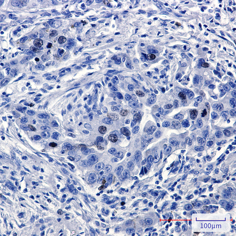 Immunohistochemistry analysis of paraffin-embedded Human lung cancer using TPX2 antibody.High-pressure and temperature Sodium Citrate pH 6.0 was used for antigen retrieval. |