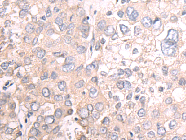 The image is immunohistochemistry of paraffin-embedded Human liver cancer tissue using P12546(ABCA1 Antibody) at dilution 1/50. (Original magnification: ×200) |
