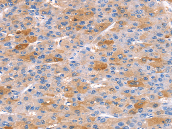 The image is immunohistochemistry of paraffin-embedded Human liver cancer tissue using P04107(ABCC1 Antibody) at dilution 1/25. (Original magnification: ×200) |