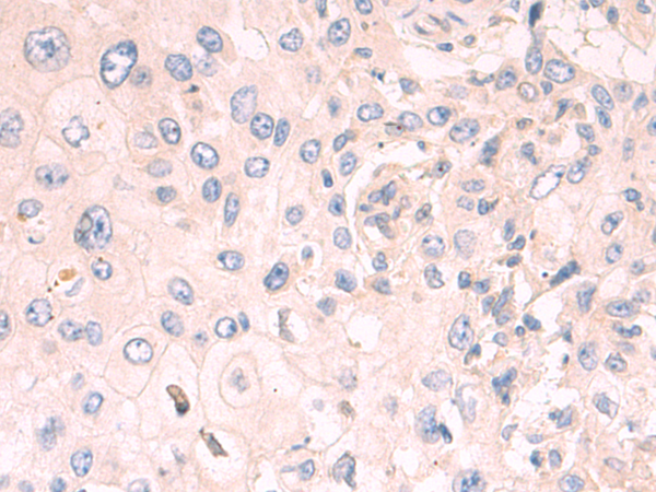 The image is immunohistochemistry of paraffin-embedded Human esophagus cancer tissue using P03711(ABCG2 Antibody) at dilution 1/50. (Original magnification: ×200) |