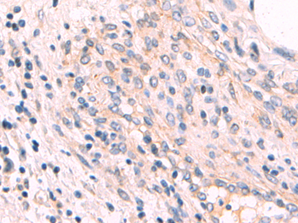 The image is immunohistochemistry of paraffin-embedded Human cervical cancer tissue using P03711(ABCG2 Antibody) at dilution 1/50. (Original magnification: ×200) |