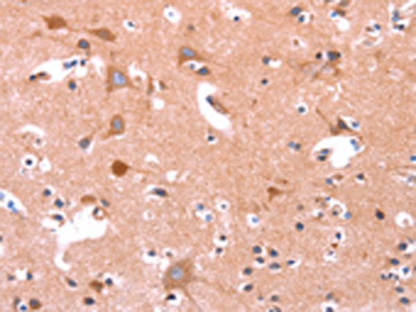 The image is immunohistochemistry of paraffin-embedded Human brain tissue using P03712(ABI1 Antibody) at dilution 1/40. (Original magnification: ×200) |