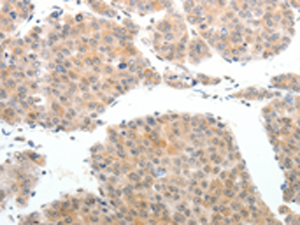 The image is immunohistochemistry of paraffin-embedded Human liver cancer tissue using P11162(ABL2 Antibody) at dilution 1/25. (Original magnification: ×200) |