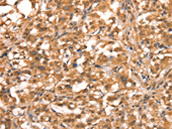 The image is immunohistochemistry of paraffin-embedded Human thyroid cancer tissue using P04251(ACADVL Antibody) at dilution 1/15. (Original magnification: ×200) |