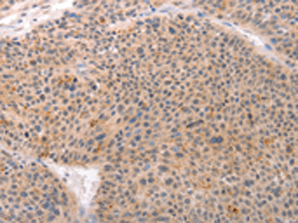 The image is immunohistochemistry of paraffin-embedded Human esophagus cancer tissue using P11418(ACIN1 Antibody) at dilution 1/80. (Original magnification: ×200) |