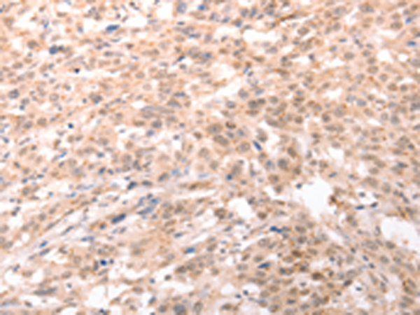 The image is immunohistochemistry of paraffin-embedded Human esophagus cancer tissue using P04527(ACIN1 Antibody) at dilution 1/30. (Original magnification: ×200) |