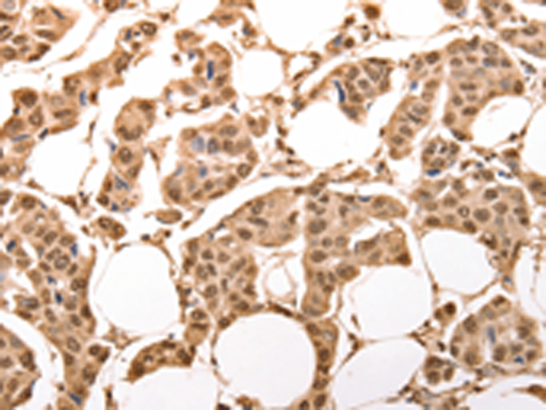 The image is immunohistochemistry of paraffin-embedded Human breast cancer tissue using P11420(ACO2 Antibody) at dilution 1/30. (Original magnification: ×200) |