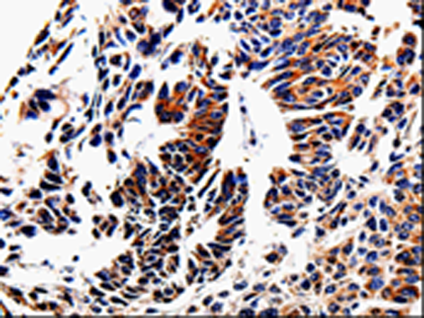 The image is immunohistochemistry of paraffin-embedded Human lung cancer tissue using P06958(ACSBG2 Antibody) at dilution 1/60. (Original magnification: ×200) |