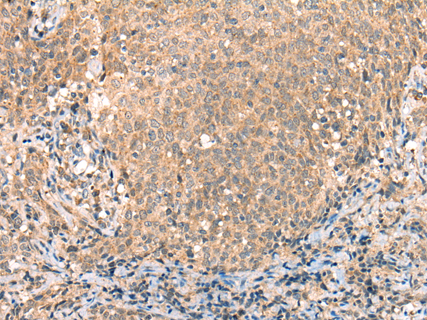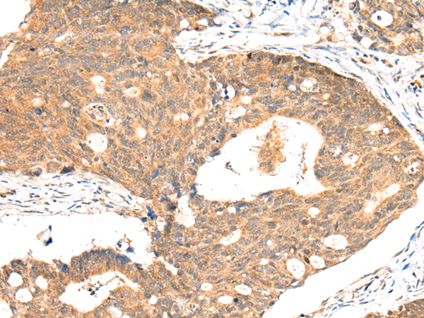 The image is immunohistochemistry of paraffin-embedded Human cervical cancer tissue using P11421(ACSL3 Antibody) at dilution 1/25. (Original magnification: ×200) |