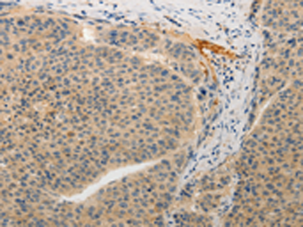 The image is immunohistochemistry of paraffin-embedded Human gasrtic cancer tissue using P11166(ADAMTS6 Antibody) at dilution 1/15. (Original magnification: ×200) |
