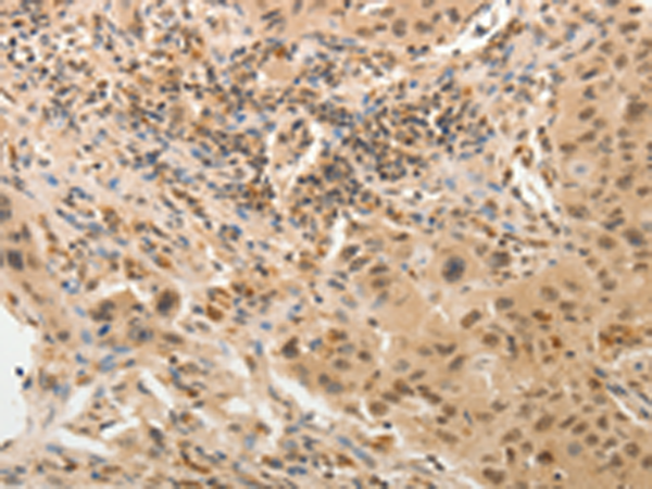 The image is immunohistochemistry of paraffin-embedded Human gasrtic cancer tissue using P04257(ADAR Antibody) at dilution 1/40. (Original magnification: ×200) |