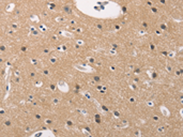 The image is immunohistochemistry of paraffin-embedded Human brain tissue using P11593(ADGRB1 Antibody) at dilution 1/40. (Original magnification: ×200) |