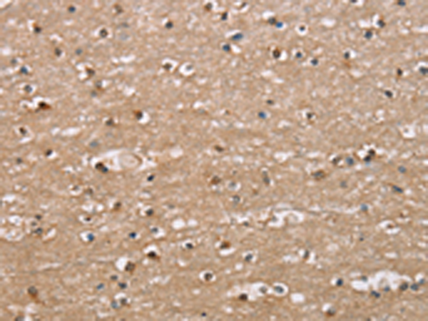 The image is immunohistochemistry of paraffin-embedded Human brain tissue using P04713(ADGRB2 Antibody) at dilution 1/25. (Original magnification: ×200) |