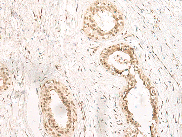 The image is immunohistochemistry of paraffin-embedded Human breast cancer tissue using P13512(ADGRG1 Antibody) at dilution 1/20. (Original magnification: ×200) |