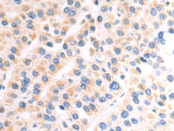 The image is immunohistochemistry of paraffin-embedded Human liver cancer tissue using P04680(ADM Antibody) at dilution 1/50. (Original magnification: ×200) |