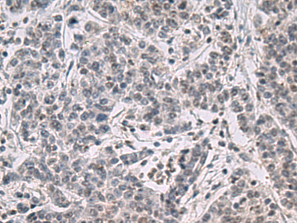 The image is immunohistochemistry of paraffin-embedded Human colorectal cancer tissue using P03716(ADM Antibody) at dilution 1/30. (Original magnification: ×200) |