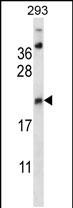 AES Antibody (C-term) (Cat. #P31399) western blot analysis in 293 cell line lysates (35ug/lane).This demonstrates the AES antibody detected the AES protein (arrow). |