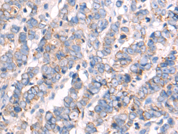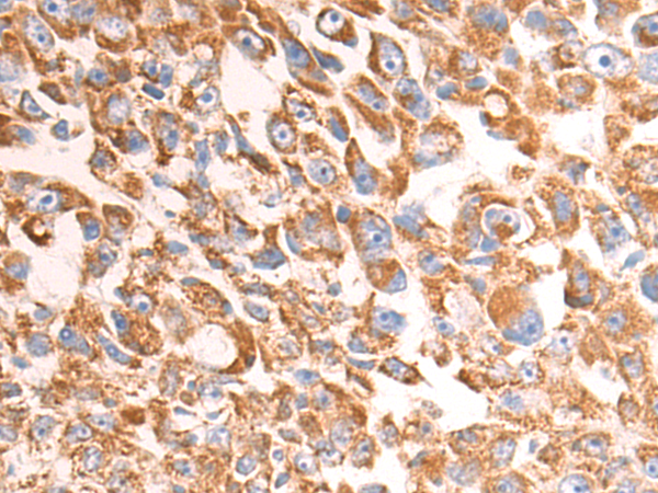 The image is immunohistochemistry of paraffin-embedded Human liver cancer tissue using P07069(AIFM1 Antibody) at dilution 1/120. (Original magnification: ×200) |