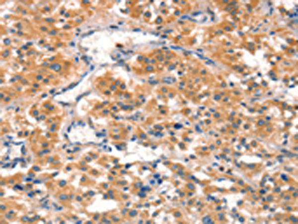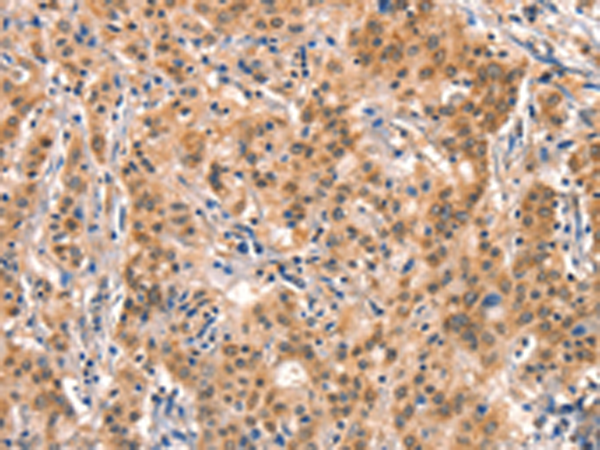The image is immunohistochemistry of paraffin-embedded Human gastric cancer tissue using P11734(AIMP1 Antibody) at dilution 1/40. (Original magnification: ×200) |