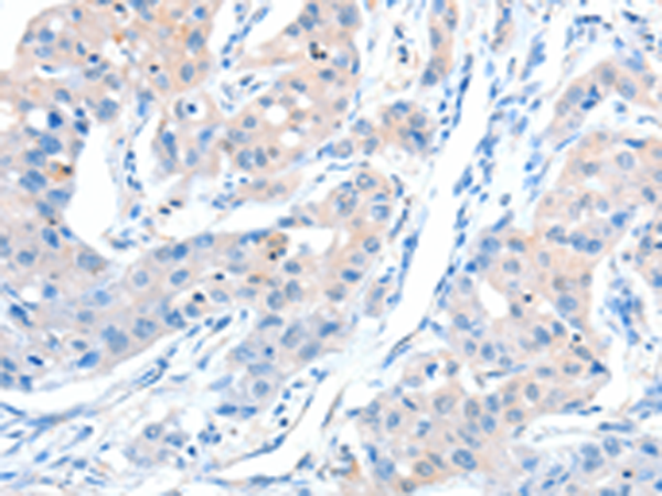 The image is immunohistochemistry of paraffin-embedded Human lung cancer tissue using P04552(AKT3 Antibody) at dilution 1/30. (Original magnification: ×200) |