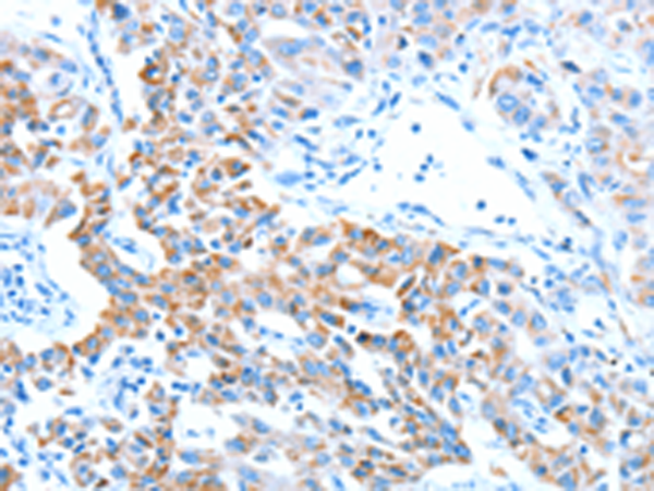 The image is immunohistochemistry of paraffin-embedded Human lung cancer tissue using P04555(ALDH5A1 Antibody) at dilution 1/60. (Original magnification: ×200) |