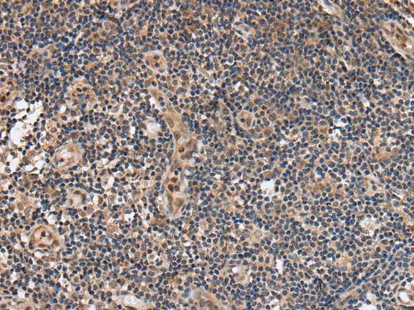 The image is immunohistochemistry of paraffin-embedded Human tonsil tissue using P05811(ALS2CL Antibody) at dilution 1/20. (Original magnification: ×200) |